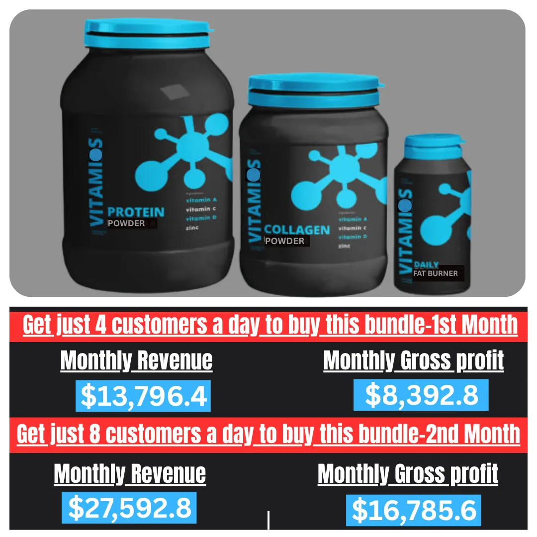 Start by selling just a few high-margin bundles a day—scale to hundreds in the coming months. The key lies in how you position and market your brand.